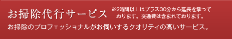 | 留守宅管理 | 月1回 1時間~ ¥4,000~ 月2回 1時間~ ¥3,000~ (1時間 / 税抜) × 1時間~ + 交通費(¥900) |